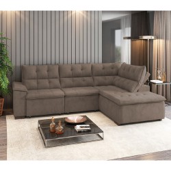 ESTOFADO TAKEI VIVIANE CANTO RETRATIL E RECLINAVEL Marron Claro - Veludo - RE471